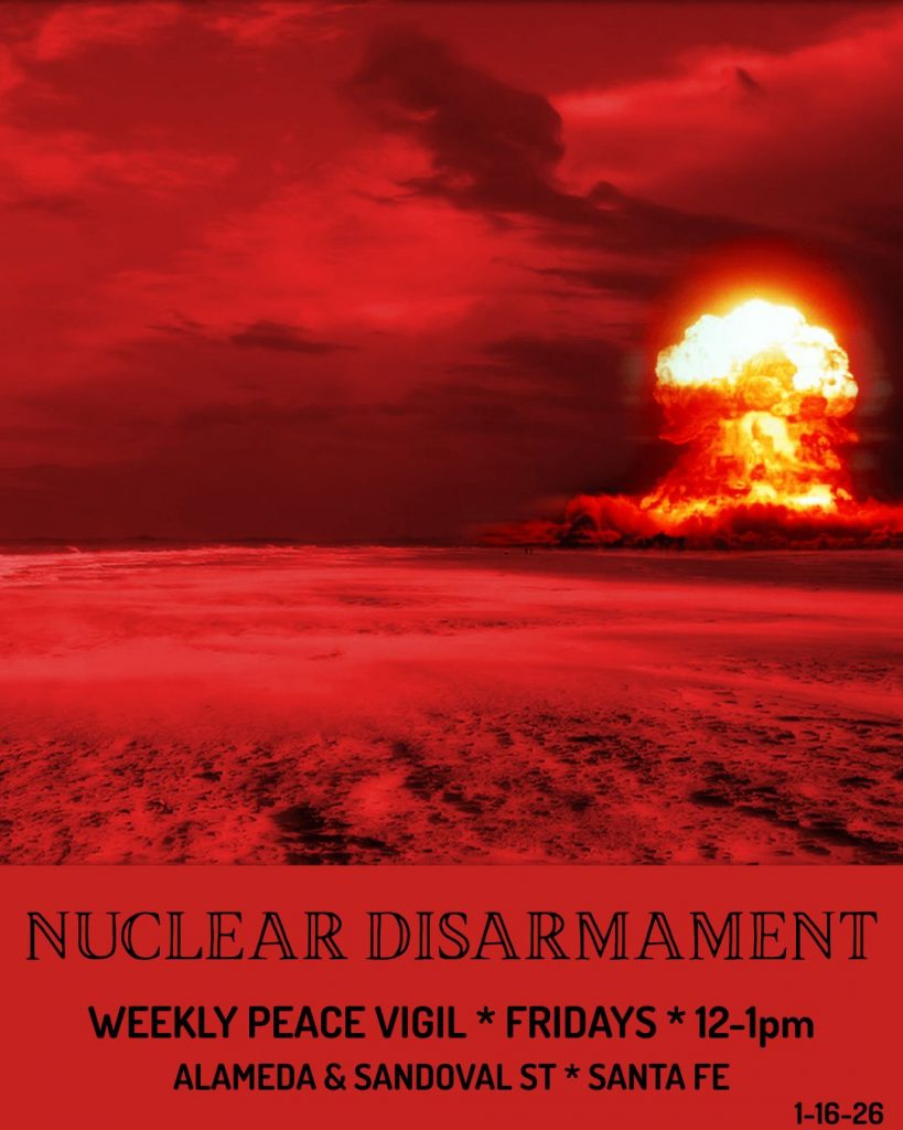 Join the weekly Peace Vigil in Santa Fe, Friday at noon at the intersection of Alameda & Sandoval.